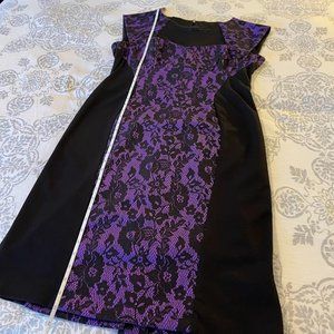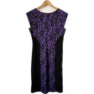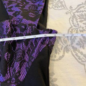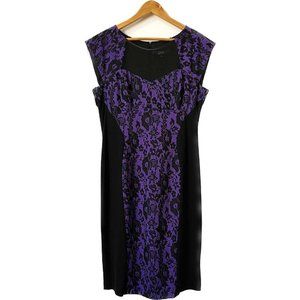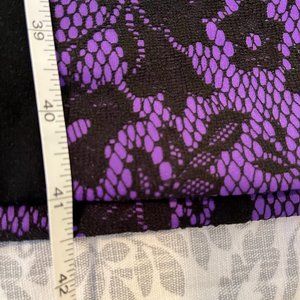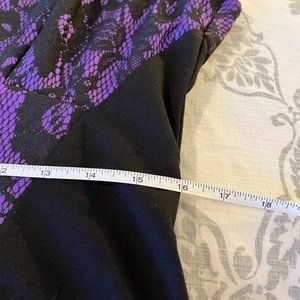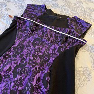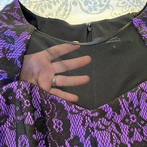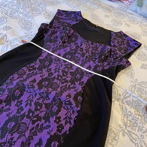 Excellent condition, worn once. Super flattering, structured bodycon dress with gorgeous purple and black lace detail and black sheer mesh decolletage sweetheart neckline. Size UK 16 is approximately a US 14. But dress fits like a US 16.