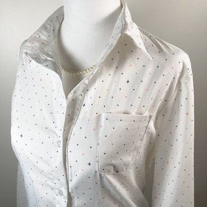 Star or cross print button-down shirt ~ Celestrial white pink blue MEDIUM blouse