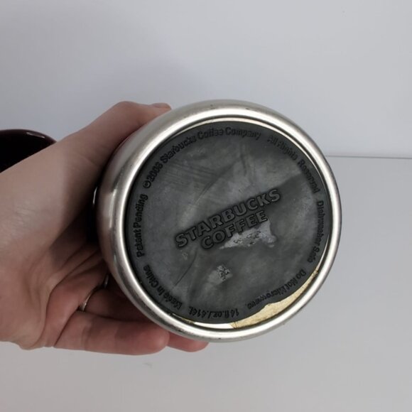 Starbucks 2006 Pink White Stainless Steel & 2014 Burgundy Collectible Mug Set