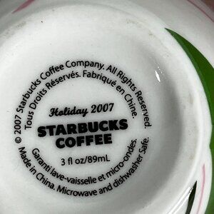 Celebrate the spirit of the season with the exclusive Starbucks 2007 Holiday Espresso Demitasse Cups & Saucers. Designed with a whimsical Candycane Swirl motif, these charming 3 fl oz cups are the perfect way to enjoy your favourite espresso or festive coffee creations.