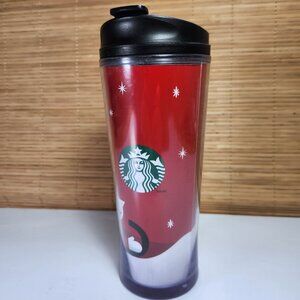 2011 Holiday snow fun Starbucks travel mug with lid.
