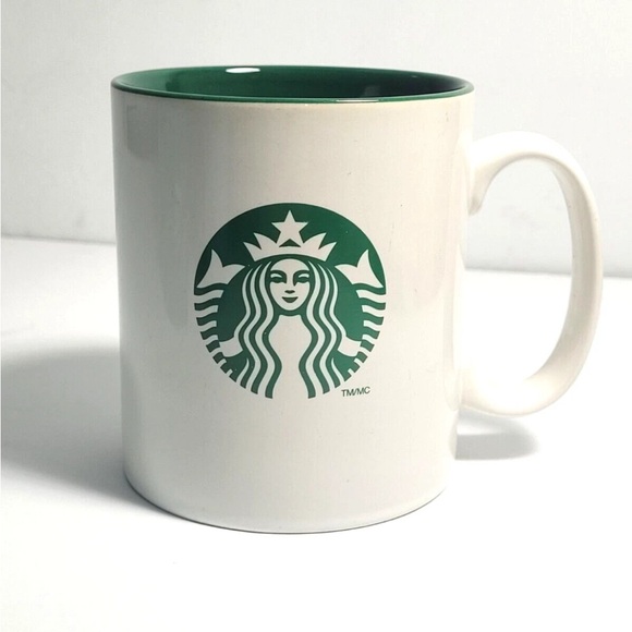 Starbucks 2012 Classic Siren Logo Coffee Mug White Green Interior 14oz new