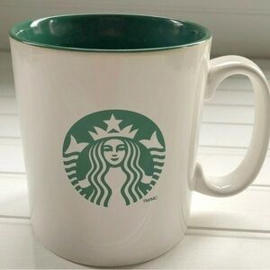 Authentic Starbucks classic ceramic mug featuring the iconic Siren logo with white exterior and signature green interior. A popular collectible style from 2012 — perfect for daily use or display.