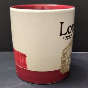 Starbucks 2015 London Global City Icon red/cream ceramic coffee mug.