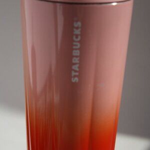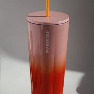 Starbucks 2020 24 Oz stainless lidded tumbler orange pink ombre Starbucks straw