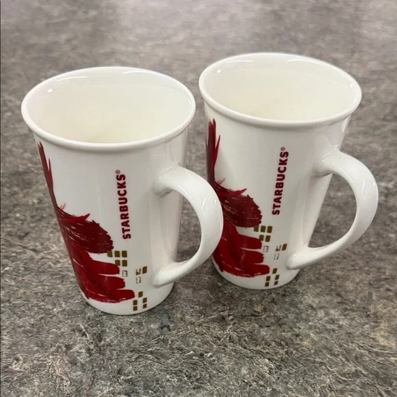 Fun Starbucks Abstract Red White & Gold Coffee Mugs Set of 2