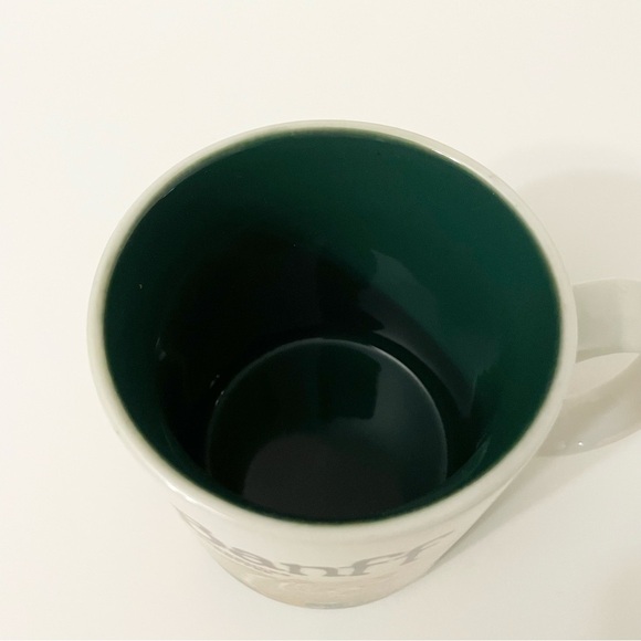 This mug is pre-owned and I’m used condition. The bottom has some marks and scratches. Please see all photos for exact mug.