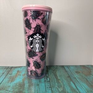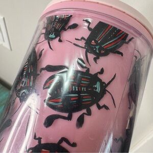 Starbucks Beetle Tumbler Bug Roach Pink Drink Coffee Cup Black Lid No Straw