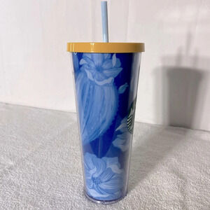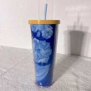 Starbucks Blue White Cactus Floral Acrylic Tumbler W Lid & Straw