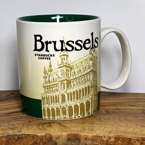Starbucks Brussels Global Icon City Series Mug 16 oz White Green 4" Tall 2016