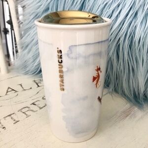 Starbucks, Ceramic, Travel Mug, Collectable, 2016, Mermaid, Gold Lid, 12 oz