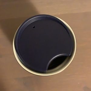 Starbucks Cream and Gold Ceramic To Go Mug with Plastic Lid