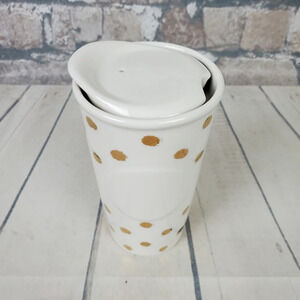 Starbucks Double Wall Travel Tumbler Dot Collection Gold Polka Dots White Lidded