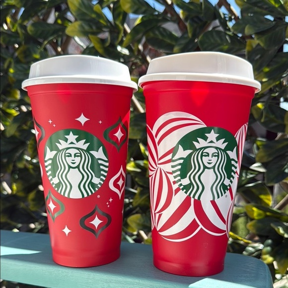 Starbucks Festive Red Tumbler with White Accents Set of 2
