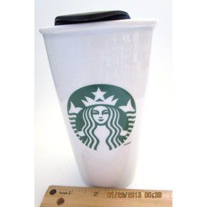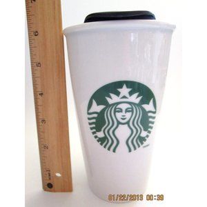 Starbucks Green Mermaid Logo Ceramic White coffee/tea mug & lid - 12 fl.oz 2011