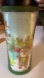 This is a pre-owned Starbucks coffee tumbler. It features a festive winter design with a reindeer and Christmas trees. The tumbler has a green base and a black lid with a green closure. It is made of plastic and is approximately 6 inches tall. The tumbler is in good condition.