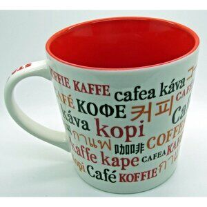 Starbucks International Languages Coffee Kaffe Koffie Mug 16oz 2008 Orange White