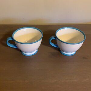 Starbucks “Jolly” 10 Oz. White and Blue Ceramic Candy Cane Mugs