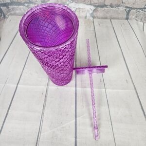 Acrylic double wall coffee tea water cold beverage cup includes pink jewel straw and lid