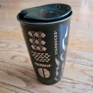 Starbucks Mermaid Golden Brown Traveler Ceramic Tumbler 12oz