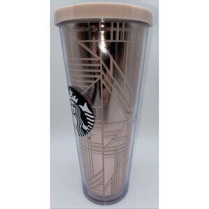 Starbucks Metallic Pink Tumbler Drinking Cup 24 oz No Straw