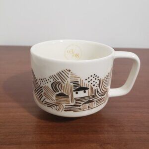 This mug is a rare and beautiful collectable item from Starbucks. It was made in 2014 and features a painted farm village on a hillside design, on a white base. The mug is made of new bone china, which is a type of ceramic that is durable, lightweight, and has a smooth and glossy finish. The mug is microwave and dishwasher safe. The mug is perfect for enjoying your favorite hot or cold beverage, or for displaying as a decorative piece in your home or office. This mug is a must-have for any Starbucks fan or collector.