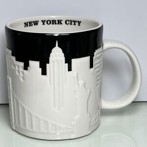 Capture the essence of New York City's iconic skyline with this Starbucks 3D relief coffee mug. A true collector's piece from 2012, this 16oz mug showcases the Big Apple's skyline in black and white, bringing a touch of the urban landscape to your morning brew.
