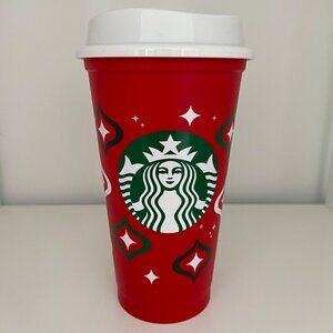 Item keywords: Starbucks cup, holiday cup, reusable cup, coffee tumbler, red travel mug, eco-friendly cup, plastic coffee cup, Starbucks merchandise, BPA-free mug, festive design, 16 oz cup, white lid cup, Starbucks holiday