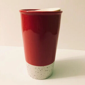 Starbucks Red Joyful Ceramic Tumbler Travel Mug Cup 12 oz Limited Edition