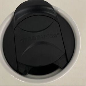 Ceramic coffee mug with green Siren logo on the front with Starbucks spell-out on the back.