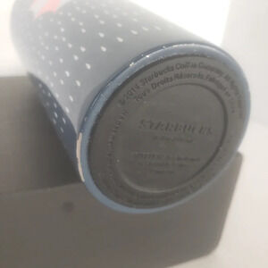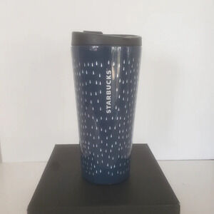 Starbucks Tall Blue Stainless Coffee Tumbler with Umbrella a d Raindrops.