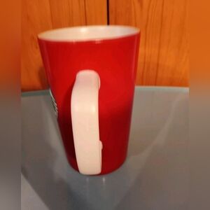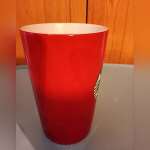 Starbucks tall red mug with green siren mermaid logo