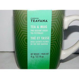 Starbucks Teavana Radiant Green 2 Tea Bags & Green Coffee Tea Mug NEW 10 oz