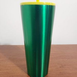 This tumbler is a stylish and durable way to enjoy your favorite beverages on the go. It features a stainless steel body with a visually striking and vibrant piece that seamlessly blends the energetic hues of yellow and green in a captivating gradient. This tumbler is not just a beverage container; it's a visual delight, catching the eye with its dynamic color transition. Beautiful contrasting straw and twist lid for easy access to your favourite cold brew. The tumbler has a capacity of 24fl. oz, large enough to keep you going through the hardest of everyday activities or work. It is also easy to clean and is hand wash only. This tumbler is a perfect gift for yourself or someone you love, and a great way to show your support for Starbucks and the environment.