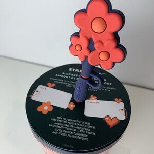Starbucks Valentines Day Pink Pixel Heart Flower Straw Topper 24 oz Tumbler New
