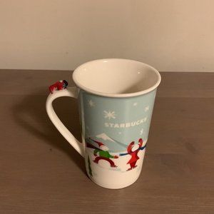 Starbucks “Winter Wonderland” White and Red Porcelain Mug with Airplane Handle