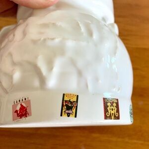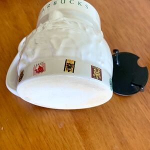Vintage Starbucks large ceramic mug features embossed continents and stamps of 11 global coffee producers.
