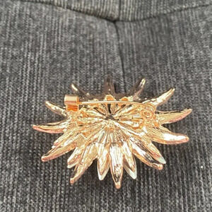 Starburst Sparkly Floral Snowflake Brooch with Faux Pearl and Burgundy Navettes