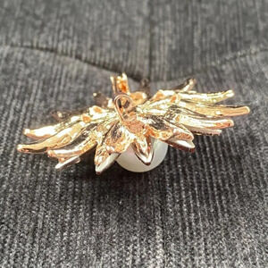Starburst Sparkly Floral Snowflake Brooch with Faux Pearl and Burgundy Navettes