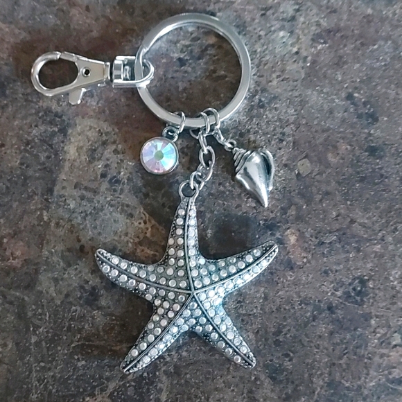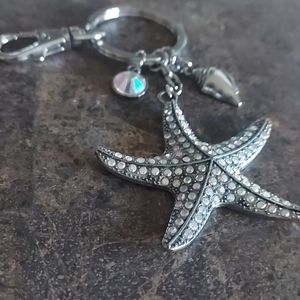 This silver and Rinstoned Starfish underwater themed Keychain is super cute and flash