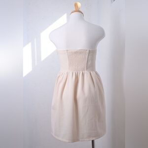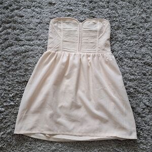 Staring at stars | pastel cream strapless womens dress. women's size medium. 100% polyester, has rubber lining inside breast area to hold up with seamless side zipper.