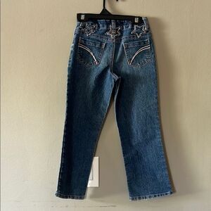 These stylish starry blue jeans are perfect for your child's wardrobe. Comfortable and trendy, they add a fun touch to any outfit.