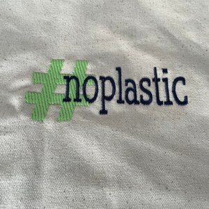 Personalized with #noplastic, this sturdy canvas shopper is a great compact size ideal for books and so much more! The handles are reinforced and soft!
