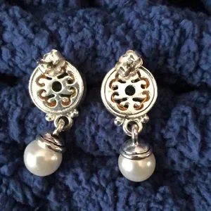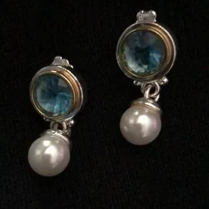 Pretty drop Avon earrings. Costume pearl, aquamarine, gold and silver tone.