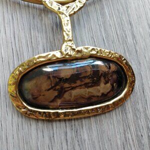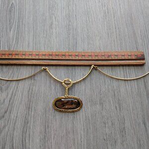 Good used condition. On the pendant near the bottom there is a resin bubble that burst.