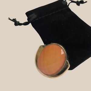 Statement Ring. The tangerine acrylic oval stone is set on a gold-tone setting.