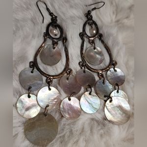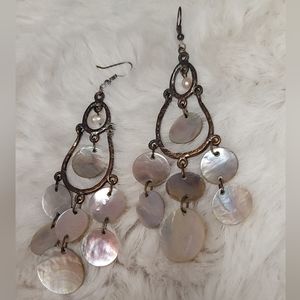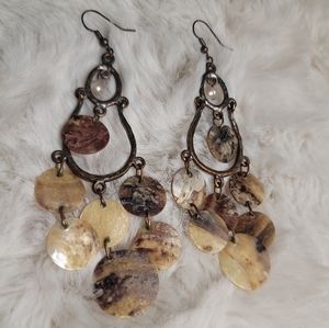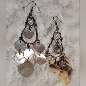 Bronze brass statement shell dangling/chandelier earrings.