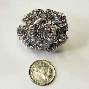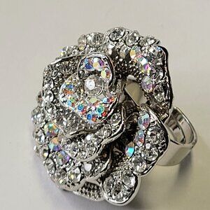 Statement Silver and Clear Rhinestone Ring with Adjustable Band