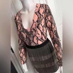 • NBD x Naven Pink Snake Print Bodysuit — S