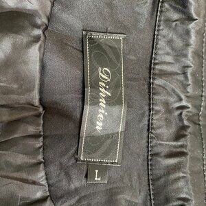 Size: Small (the label says large, BUT please see Meauresurements, this jacket does not have stretch) Lying flat: armpit to armpit, 16 inches, when closed at the bottom 17 inches (with some room), length 20 inches, shoulder to bottom of sleeve, 21 inches